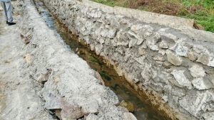 ‎Penyusunan batu kali yang tidak berimbang hingga terkesan amburadul, belum lagi Campuran adukan semen dan pasir yang diduga tidak sesuai standar teknis, dengan porsi pasir lebih dominan, yang berpotensi menurunkan kualitas dan daya tahan bangunan tersebut.