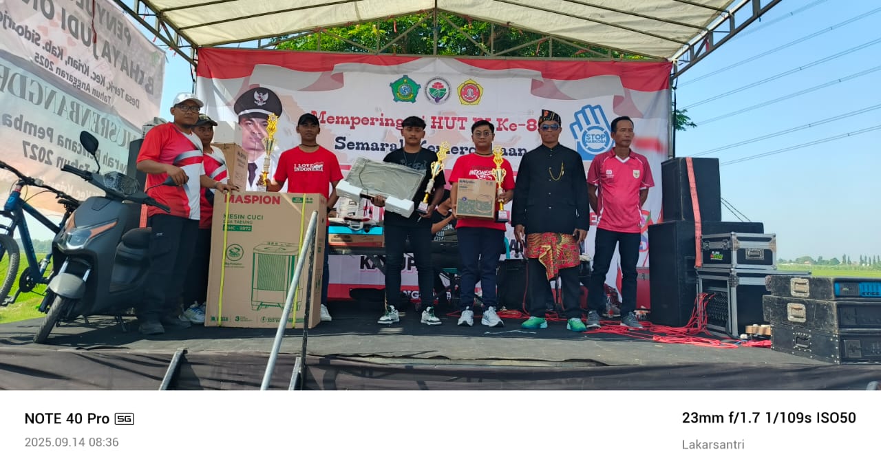 Sidoarjo – Ribuan warga Desa Terik, Kecamatan Krian, Kabupaten Sidoarjo, tumpah ruah mengikuti Jalan Sehat Budaya dalam rangka memperingati HUT ke-80 Kemerdekaan Republik Indonesia. Acara yang digelar di lapangan desa pada Minggu (14/8/2025) ini diinisiasi oleh Karang Taruna bersama Pemerintah Desa, berlangsung meriah dengan semangat kebersamaan dan kegembiraan.