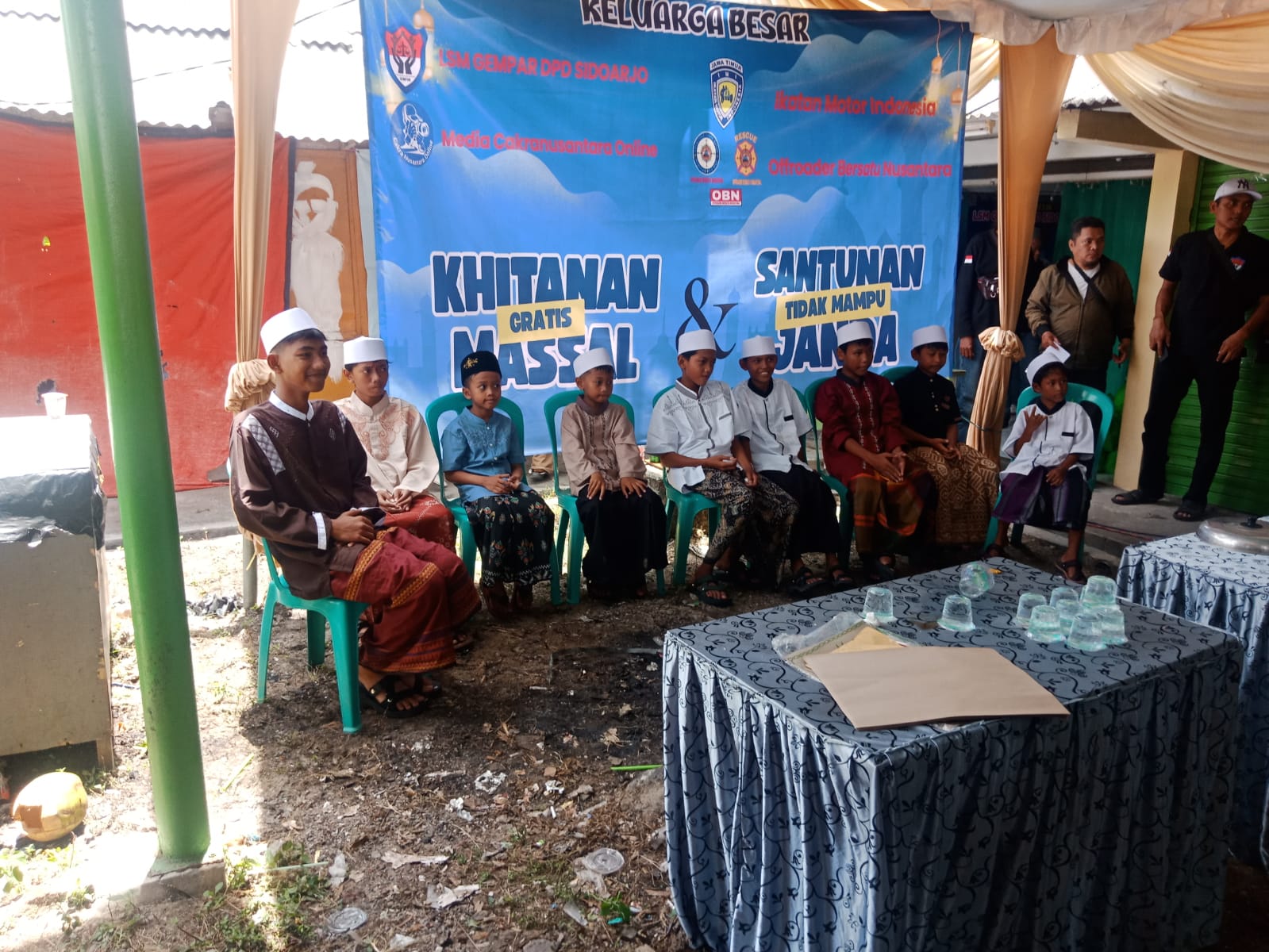Sidoarjo, Jawa Timur, 1/ 11/2025,, Suasana pagi yang hangat berubah menjadi penuh haru dan kebahagiaan ketika Dewan Pimpinan Daerah (DPD) Lembaga Swadaya Masyarakat Generasi Muda Peduli Aspirasi Masyarakat (LSM GEMPAR) dan OBN ( OFFROADER BERSATU NUSANTARA ) menggelar kegiatan khitanan massal dan santunan bagi janda tidak mampu,