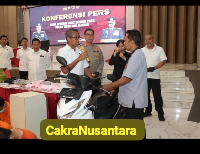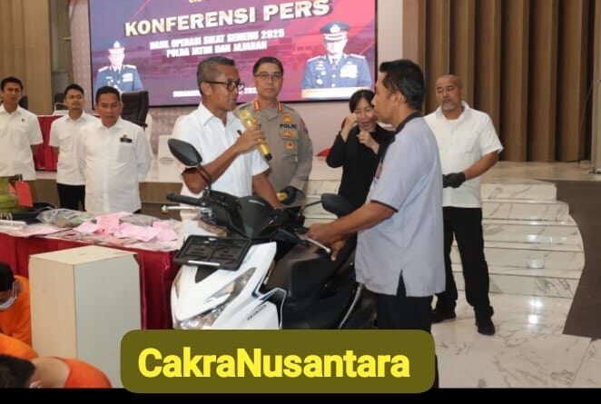 SURABAYA – Direktorat Reserse Kriminal Umum (Ditreskrimum) Polda Jawa Timur menyerahkan kembali satu unit sepeda motor Honda Beat hasil pengungkapan kasus pencurian kendaraan bermotor dalam Operasi Sikat Semeru 2025.
