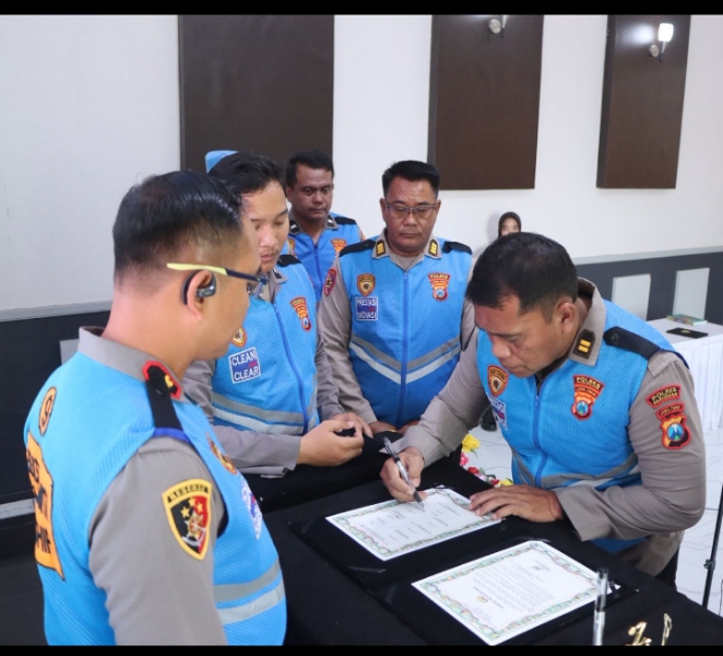 Kegiatan penandatanganan fakta integritas digelar secara serentak melalui Zoom dan diikuti seluruh jajaran Polres se-Jawa Timur dari wilayah masing-masing.