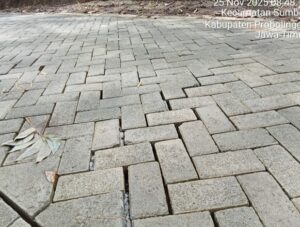 Paving blok diduga tidak sesuai mutu, banyak yang retak dan patah.