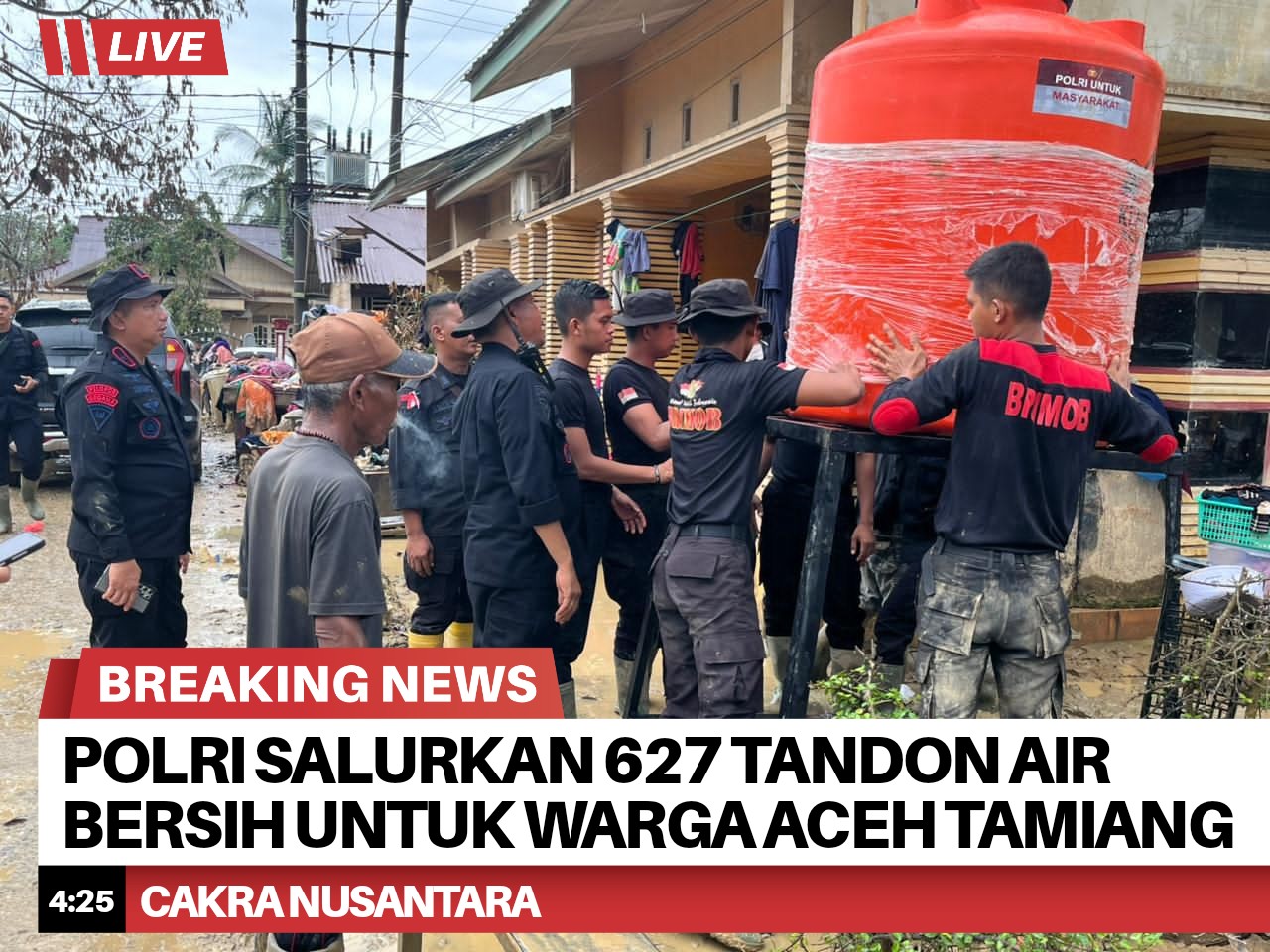 Polri Salurkan 627 Tandon Air Bersih untuk Warga Terdampak Bencana, Salah Satunya di Aceh Tamiang