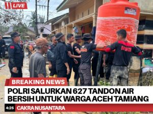 Aceh Tamiang – Kepolisian Negara Republik Indonesia (Polri) menyalurkan total 627 unit tandon air bersih sebagai bagian dari upaya penanganan bencana alam di wilayah Sumatera, termasuk bagi warga terdampak banjir di Kabupaten Aceh Tamiang, Provinsi Aceh. Bantuan ini menjadi langkah konkret Polri dalam memastikan ketersediaan air bersih pascabencana, sekaligus mendukung pemulihan kehidupan masyarakat.