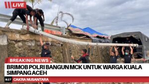 Aceh Tamiang – Personel Satuan Tugas (Satgas) Aman Nusa II Polda Aceh kembali menunjukkan kepedulian terhadap kebutuhan dasar masyarakat. Pada Rabu (17/12/2025), Satgas Aman Nusa II Aceh Tamiang melaksanakan pembangunan dan penyaluran fasilitas MCK (Mandi, Cuci, Kakus) umum di bawah Jembatan Kuala Simpang, Kecamatan Karang Baru, Kabupaten Aceh Tamiang.