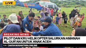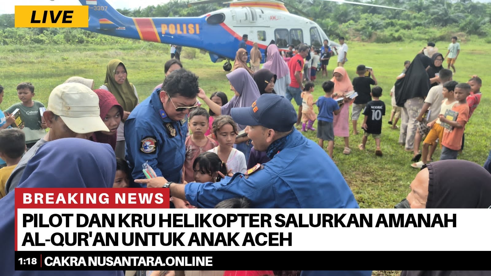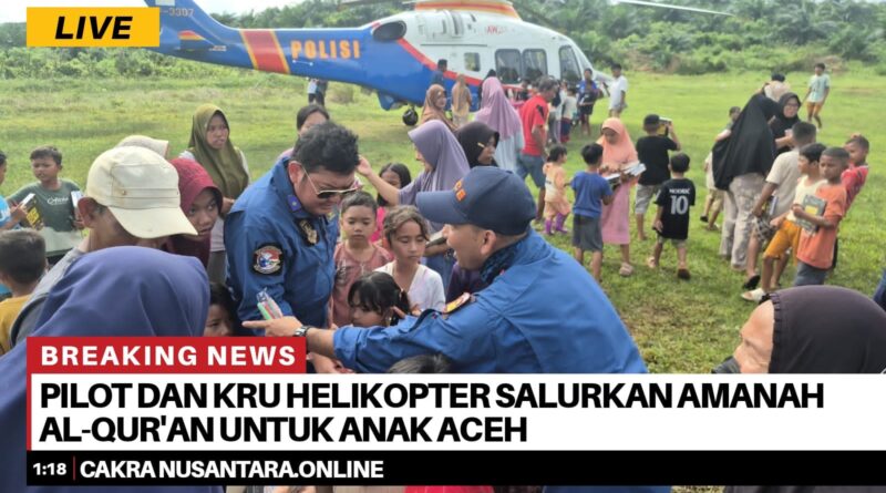 Pilot dan Kru Helikopter Salurkan Amanah Al-Qur’an untuk Anak-Anak Terdampak Banjir di Aceh Tamiang