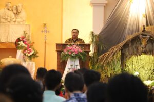 Bupati Warsubi mengajak para jemaat, untuk menjadikan momentum perayaan Natal ini sebagai media untuk kita memperbaiki kualitas diri, baik dalam beribadah kepada Tuhan, maupun berinteraksi dengan sesama manusia.