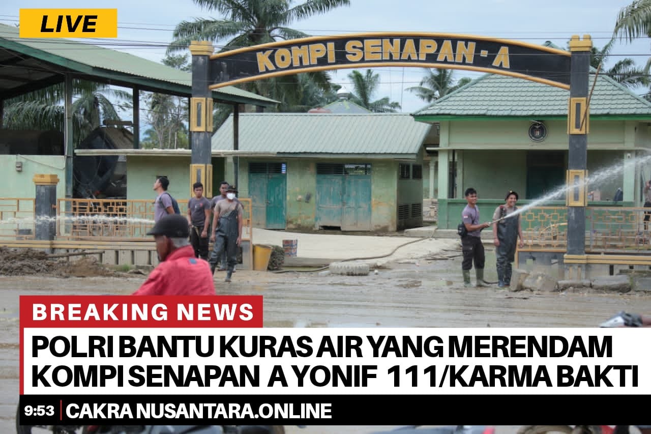 Polri Bantu Kuras Air Yang Merendam Kompi Senapan A Yonif 111 / Karma Bakti, Aceh Tamiang
