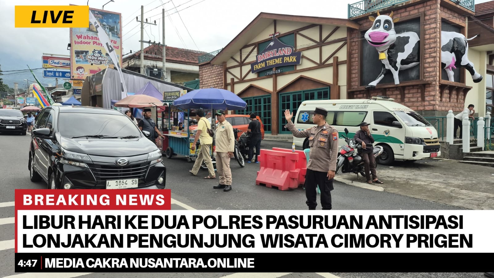 “Hari ini memang ada peningkatan jumlah pengunjung dibanding hari biasa, namun masih dalam batas aman. Polres Pasuruan telah menyiagakan personel di Pos Pengamanan Cimory Prigen untuk mengatur arus keluar-masuk kendaraan serta memastikan aktivitas wisata berjalan aman dan lancar,” ujar AKBP Jazuli Dani Iriawan, Sabtu (27/12/2025).