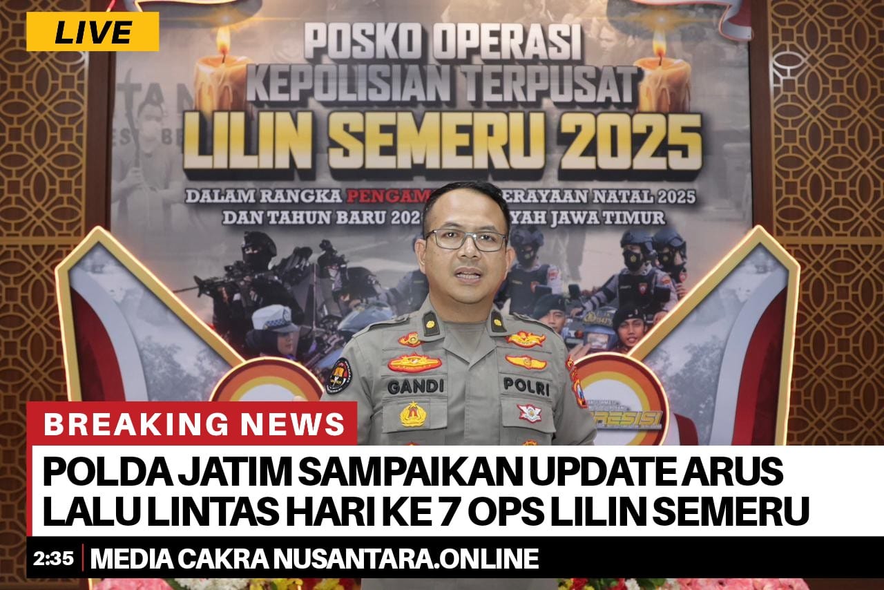 SURABAYA – Polda Jawa Timur menyampaikan update arus lalu lintas kendaraan di ruas tol wilayah Jawa Timur pada hari ketujuh pelaksanaan Operasi Lilin Semeru 2025, dalam rangka pengamanan Natal dan Tahun Baru (Nataru).