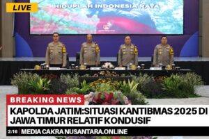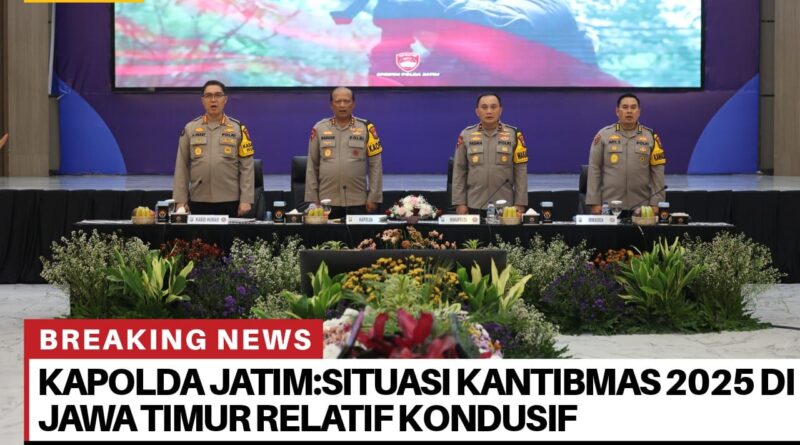 SURABAYA – Polda Jawa Timur memastikan situasi keamanan dan ketertiban masyarakat (kamtibmas) di wilayah Jawa Timur tetap kondusif hingga penghujung tahun 2025.