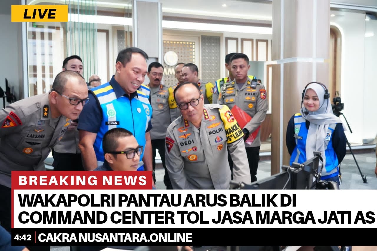 Bekasi Kota — Wakil Kepala Kepolisian Negara Republik Indonesia Komjen Pol. Dr. Dedi Prasetyo melakukan monitoring arus lalu lintas libur Natal 2025 dan Tahun Baru 2026 (Nataru) di Command Center Tollroad Jasa Marga, Jatiasih, Bekasi Kota, Jumat (2/1/2025) siang.