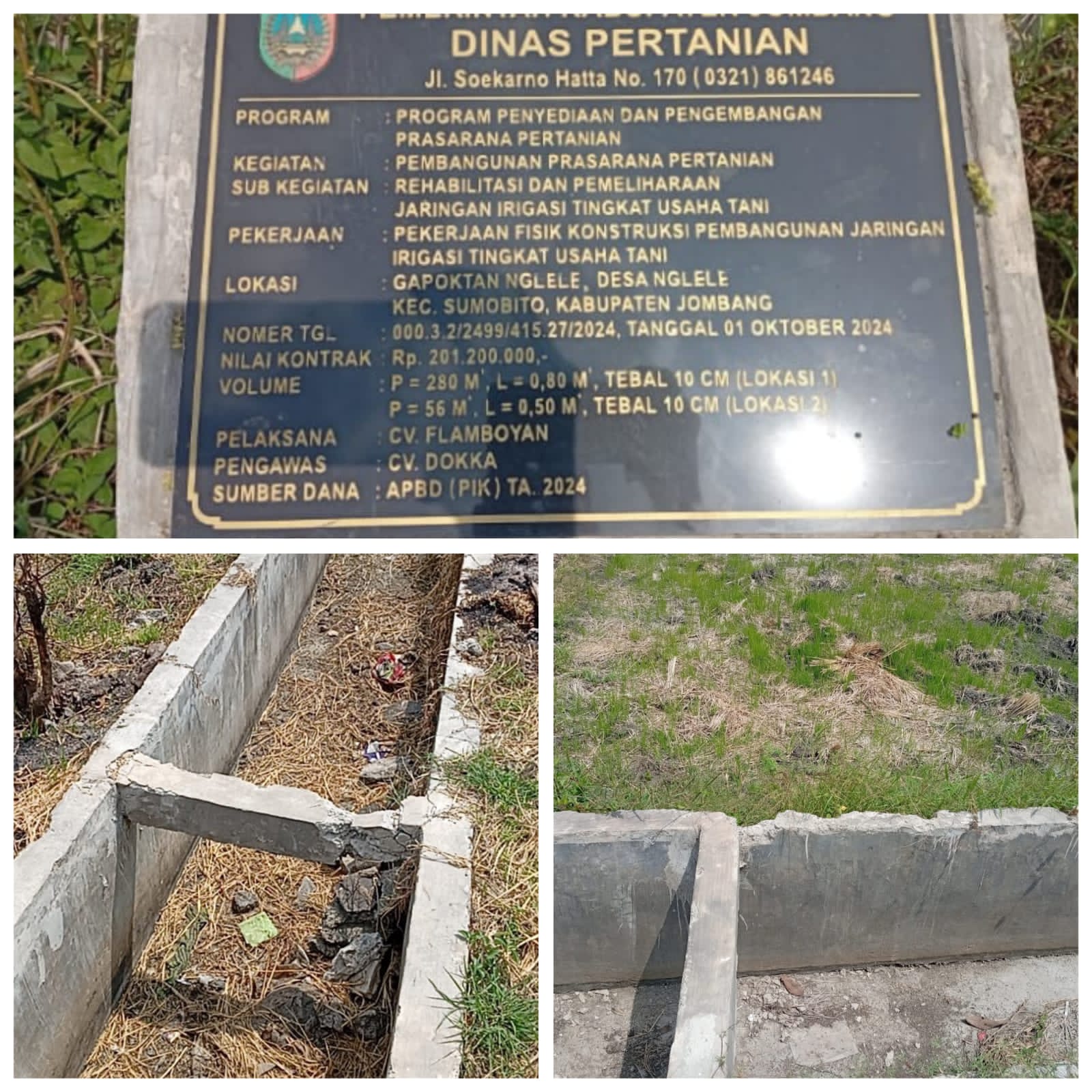 Proyek Jaringan Saluran Irigasi Dinas Pertanian Sudah Rusak, APH Usut Tuntas