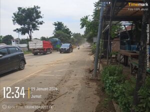 Pantauan Cakra Nusantara Online di lapangan menunjukkan, lumpur bekas banjir mengering dan berubah menjadi debu halus yang beterbangan setiap kali arus lalu lintas padat.
