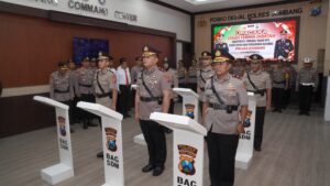Jombang – Polres Jombang menggelar upacara serah terima jabatan (sertijab) Wakapolres, Kabagops, Kasat Lantas serta pengukuhan jabatan Kasiwas, Kamis (15/1/2026) pagi. Kegiatan berlangsung di Ruang Jombang Command Center Mapolres Jombang.