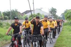 Ratusan personel Polri dan ASN Polres Kediri Polda Jatim mengikuti kegiatan olahraga bersepeda bersama Kapolres Kediri AKBP Bramastyo Priaji.