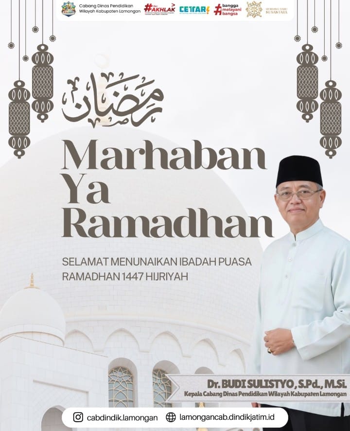 Lamongan – //Cakranusantara.online – Menyambut datangnya bulan suci Ramadan, Dr Budi Sulistyo S.Pd, M.Si, selaku Kepala Cabang Dinas Provinsi di Kabupaten Lamongan, menyampaikan ucapan Marhaban Ya Ramadan kepada seluruh masyarakat, khususnya umat Muslim yang menjalankan ibadah puasa.