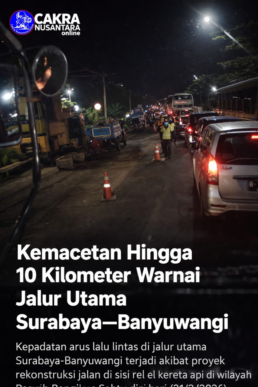 Pasuruan – Arus lalu lintas di jalur utama penghubung Surabaya–Banyuwangi mengalami kemacetan panjang, Sabtu (21/2/2026) dini hari. Kepadatan terjadi di ruas Jalan Surabaya–Pasuruan, tepatnya di wilayah Latek, Kecamatan Bangil, Kabupaten Pasuruan, Jawa Timur.