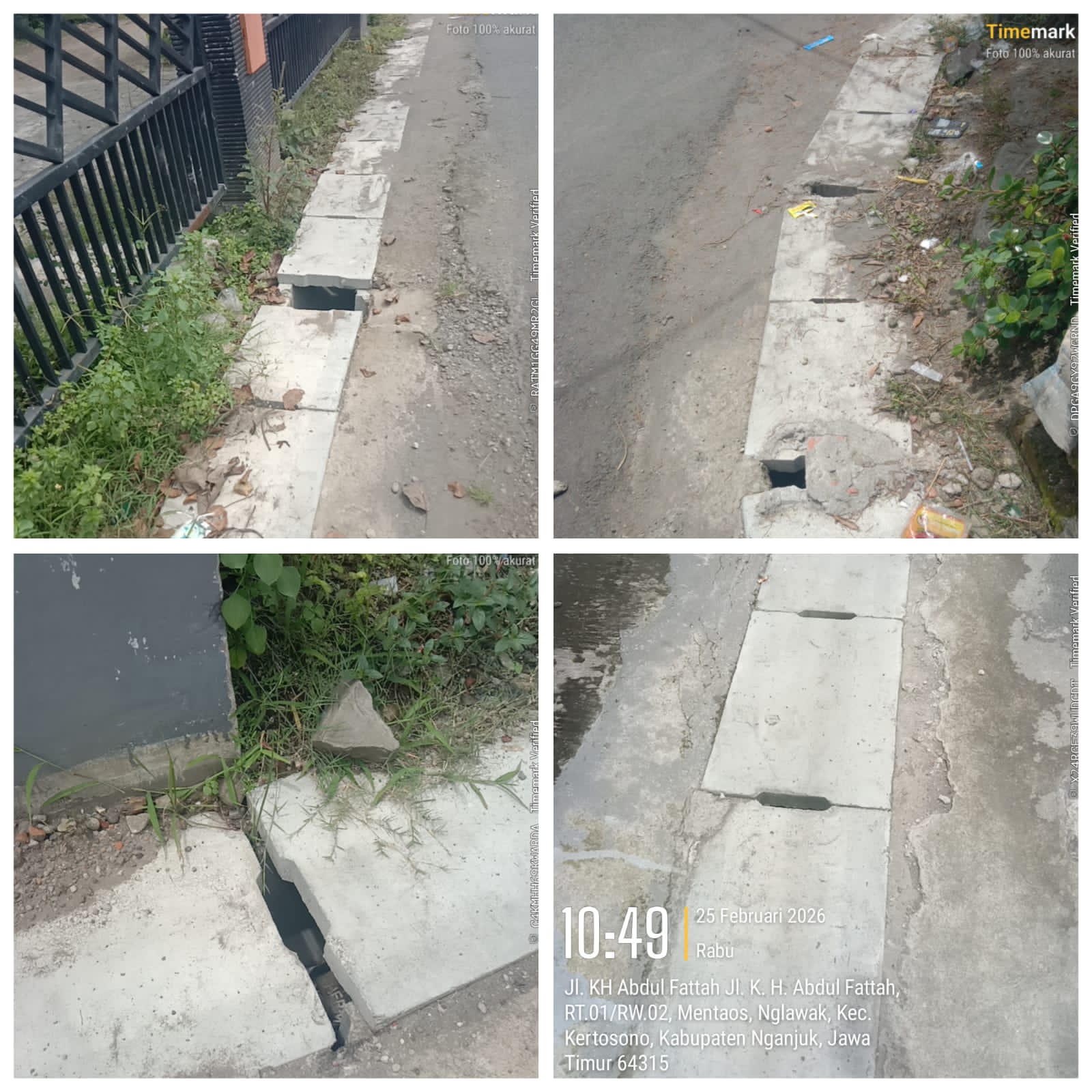 “Drainase U Ditch tidak rata serta tutupnya banyak yang sudah pecah, jalan yang semula bagus kini jadi rusak karena adanya penggalian drainase tersebut, harapan kami jalan tersebut harus di perbaiki seperti semula”. Ucapnya