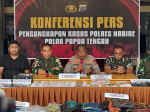NABIRE — Aparat gabungan TNI-Polri menggelar konferensi pers terkait perkembangan upaya penegakan hukum terhadap target daftar pencarian orang (DPO) kelompok kriminal bersenjata (KKB) di Kabupaten Nabire yang digelar di Polres Nabire pada Senin (2/3/2026) pukul 16.00 WIT.
