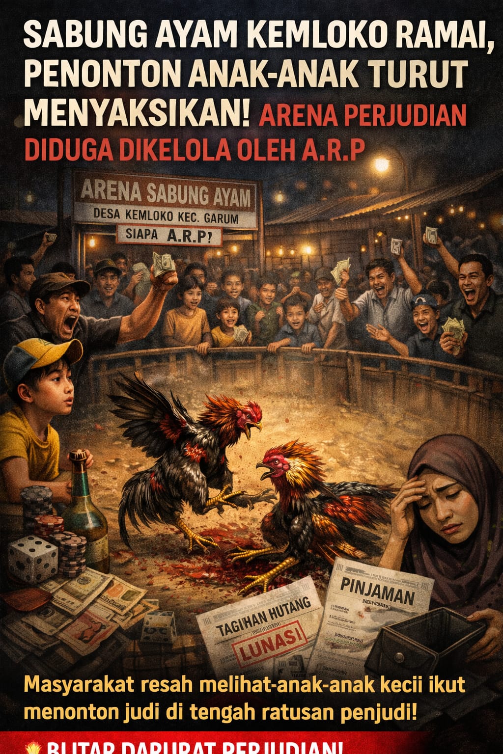 Aktivitas perjudian sabung ayam di Desa Kemloko, Kecamatan Garum, Kabupaten Blitar kini menjadi sorotan serius masyarakat. Di tengah berbagai slogan pemberantasan penyakit masyarakat, sebuah arena perjudian justru diduga beroperasi secara terang-terangan dan seolah tidak tersentuh hukum.
