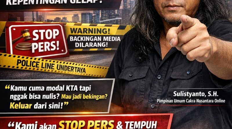 Read MoreSidoarjo, 29 Maret 2026 – Pimpinan Umum Media Cakra Nusantara Online, Sulistyanto, S.H., akhirnya angkat bicara dengan nada keras dan