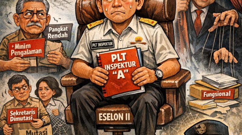 4 Februari 2026: A. Ditunjuk PLT Setelah semua posisi kunci dikosongkan, A. — pejabat fungsional yang belum pernah berpindah kantor dan baru naik pangkat 3 bulan — ditunjuk memimpin Inspektorat.