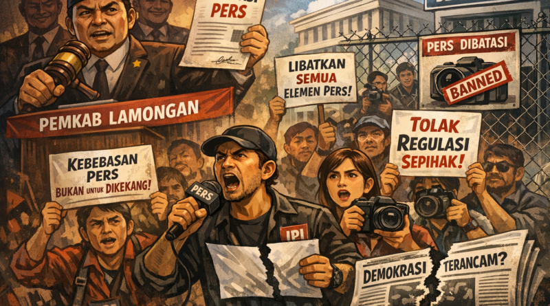 LAMONGAN || Cakra Nusantara — Rencana Pemerintah Kabupaten Lamongan untuk menyusun regulasi khusus terkait insan pers mulai menuai gelombang kritik tajam dari berbagai kalangan jurnalis. Alih-alih dianggap sebagai upaya memperkuat ekosistem media, kebijakan ini justru dinilai sarat kepentingan dan berpotensi menjadi alat kontrol terselubung terhadap kebebasan pers di daerah.